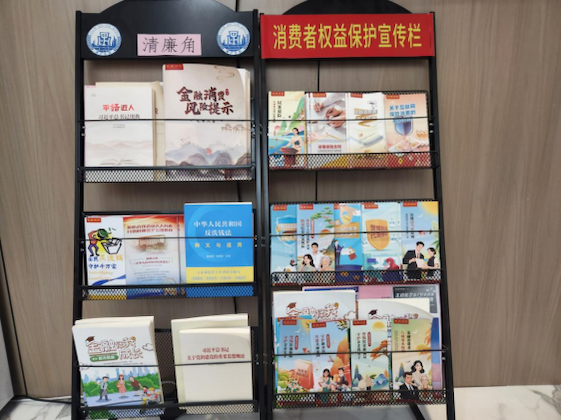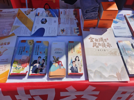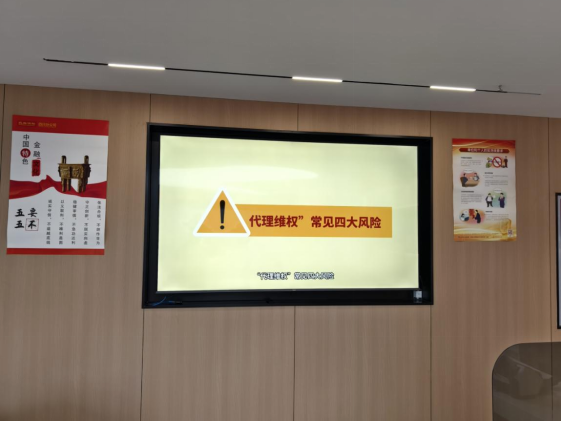 除此之外,各机构积极营造宣传氛围。在职场柜面的金融教育宣传专区,摆放了充足的教育宣传彩页、折页和杂志等,内容包括双语版金融消费者八项基本权利、老年人反诈宣传、适当性原则解读、青少年金融消费风险、代理维权陷阱、个人信息保护等,方便客户及员工随时学习了解。同时,各营业区域及网点的电子显示屏滚动播放活动口号、电子海报以及风险提示动画,“金融教育宣传周”活动展架也被摆放在显眼位置,丰富的宣传形式吸引了消费者们的目光,营造出浓厚的宣传氛围。
